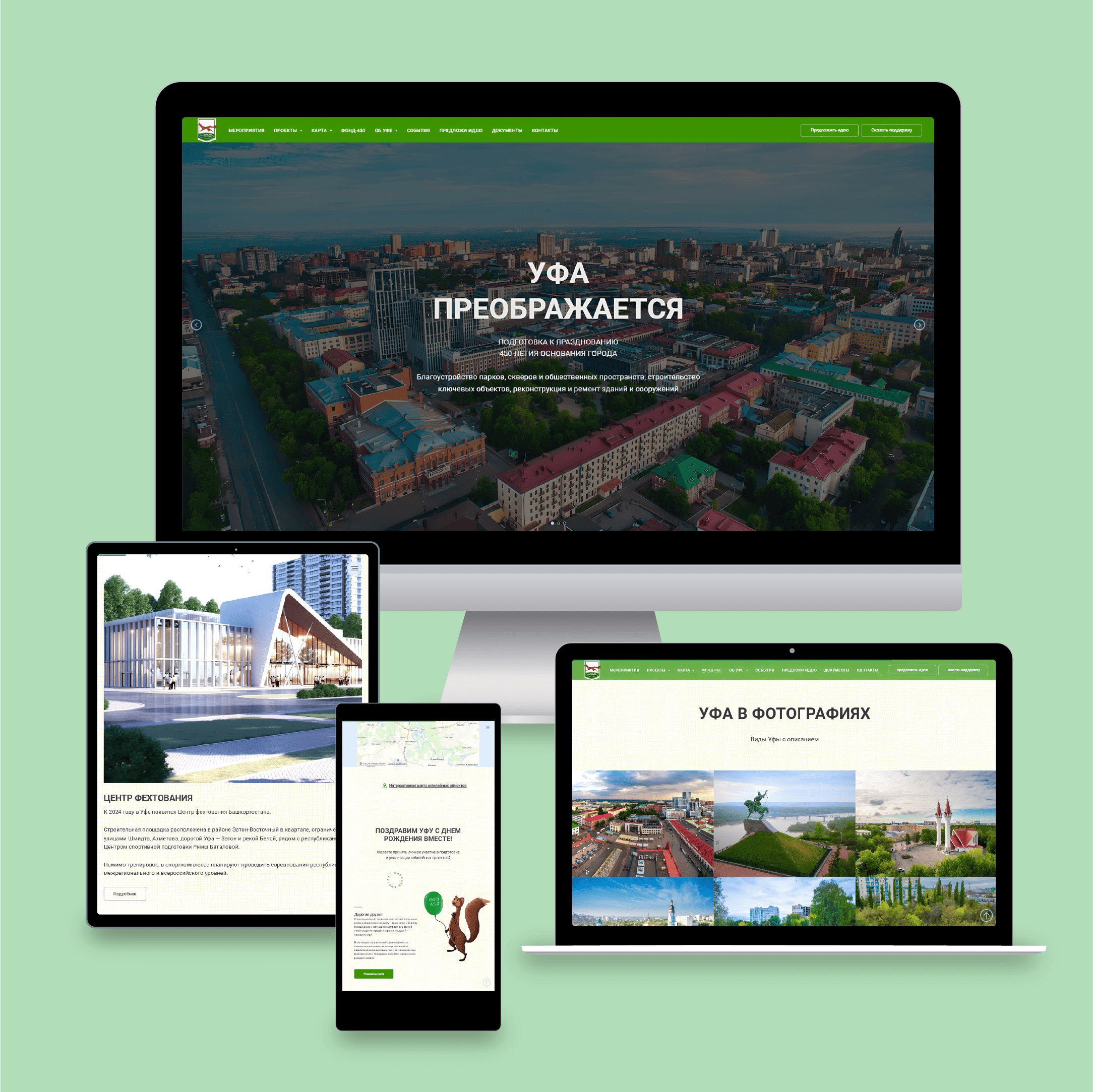 Этот многостраничный сайт я создала к 450-летию основания города Уфы по заказу Мэра. «Создайте сайт к юбилею нашего города». Вот и все техническое задание. Работала в одиночку от разработки концепции и структуры до поиска и создания контента для наполнения.