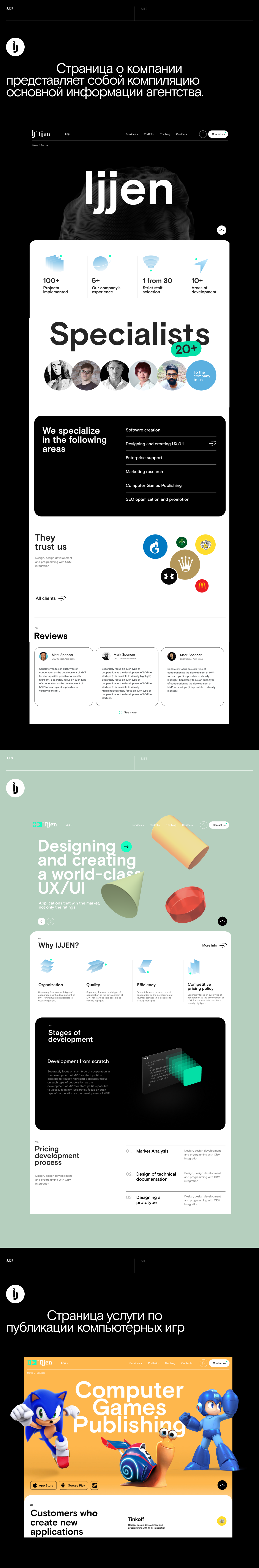 Задача состоит в проектировании и реализации сайта агентства Ijjen, специализирующегося на разработке цифровых продуктов. Агентство располагается на Кипре и работает на западный рынок.
