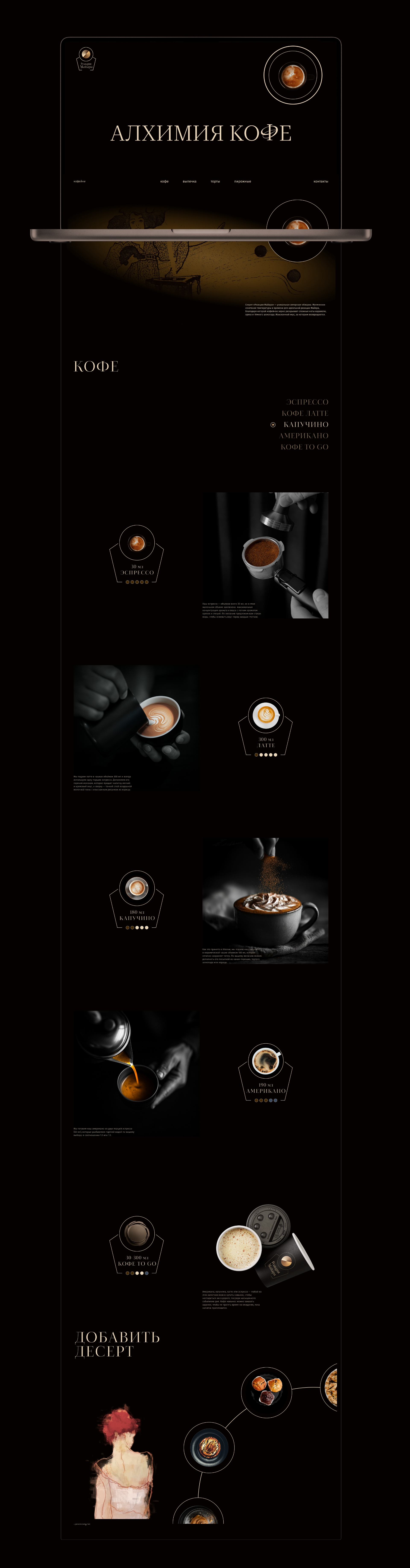 Разработка айдентики и веб-сайта кофейни, которая позиционируется как заведение совершенно особого типа, отличное от большинства современных кофешопов, делающих ставку на демократичность.