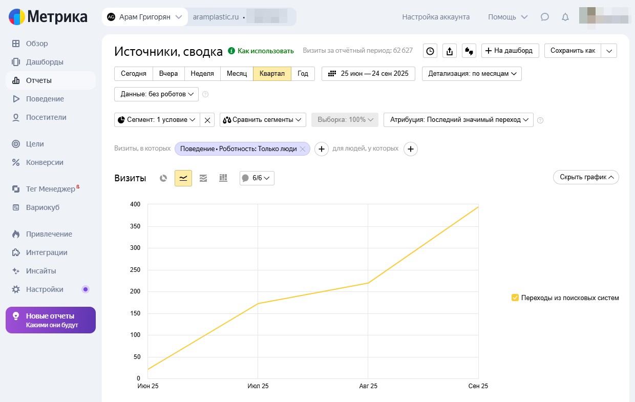 Помимо разработки сайта, клиенту потребовались реклама и продвижение проекта. Я комплексно закрыл все потребности и мы успешно продвигаемся на пути к олимпу в выдаче поисковых систем.
