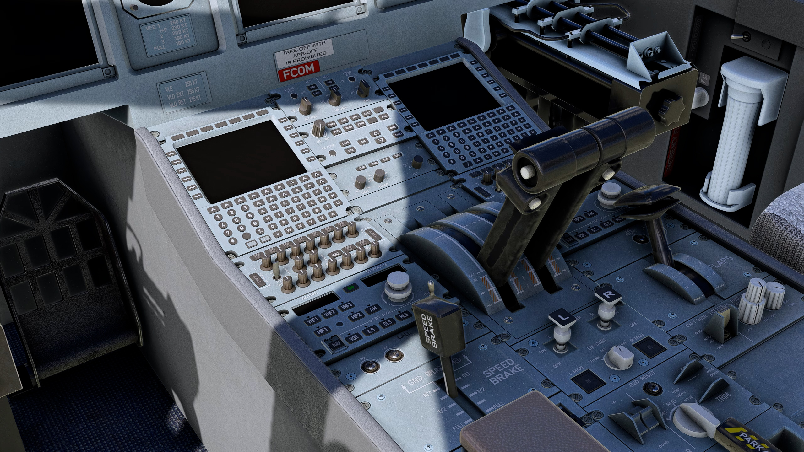 Мы доработали облик старой модели согласно референсам, смоделировали высокодетлизированную кабину с панелями управления, в точности повторяюущую реальную, анимировали все ручки управления, педали, сайдстик, освещение. Настроили скрипты для вывода информации на дисплеи, анимировали авионику, турбины двигателей и другие механизмы.