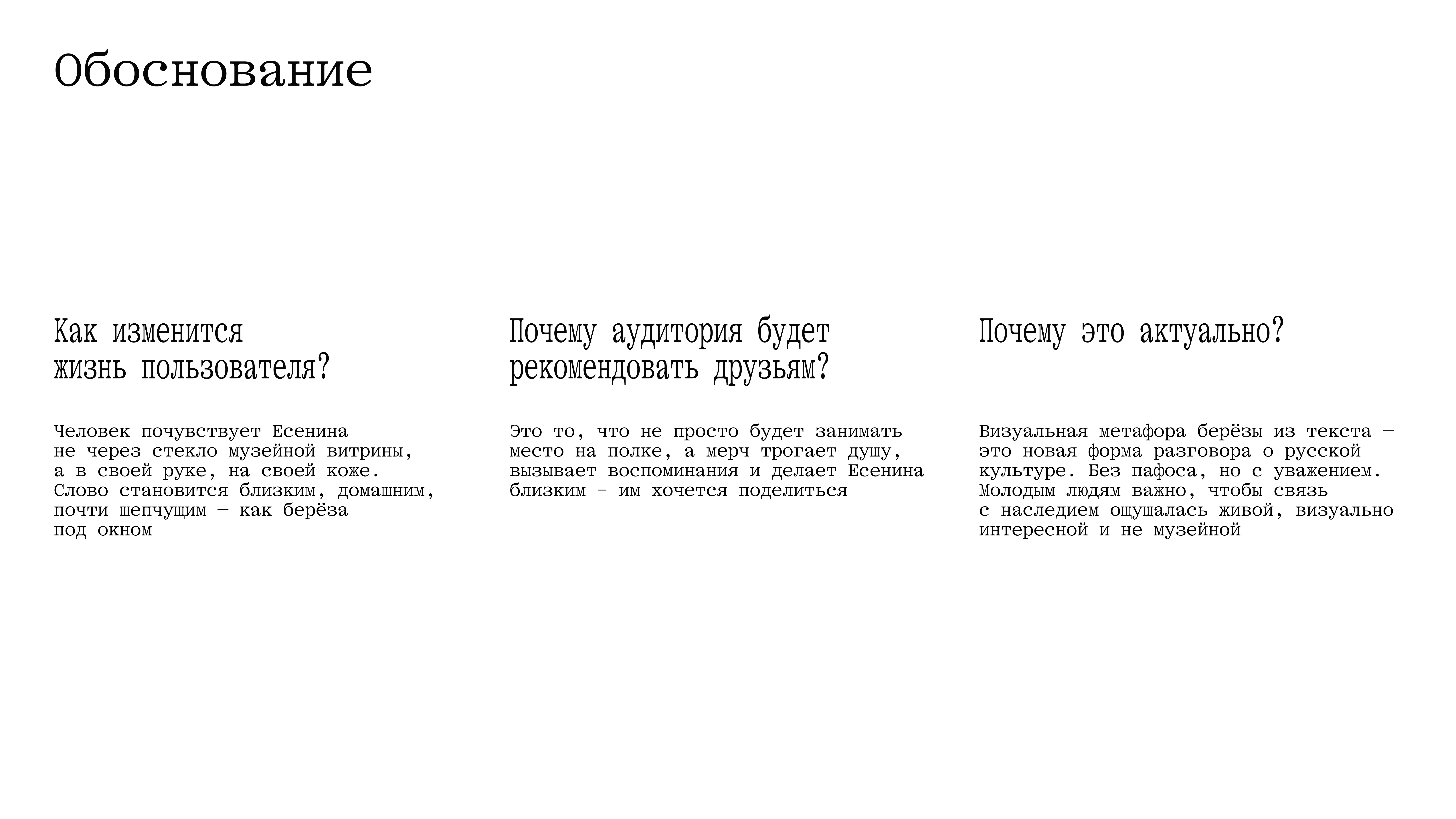 В рамках конкурса Дизайн-цех, за 2 дня, необходимо было разработать линейку мерча для посетителей музея Сергея Есенина. Было важно, чтобы концепция и философия мерча отражали не только творчество поэта, но и русский дух