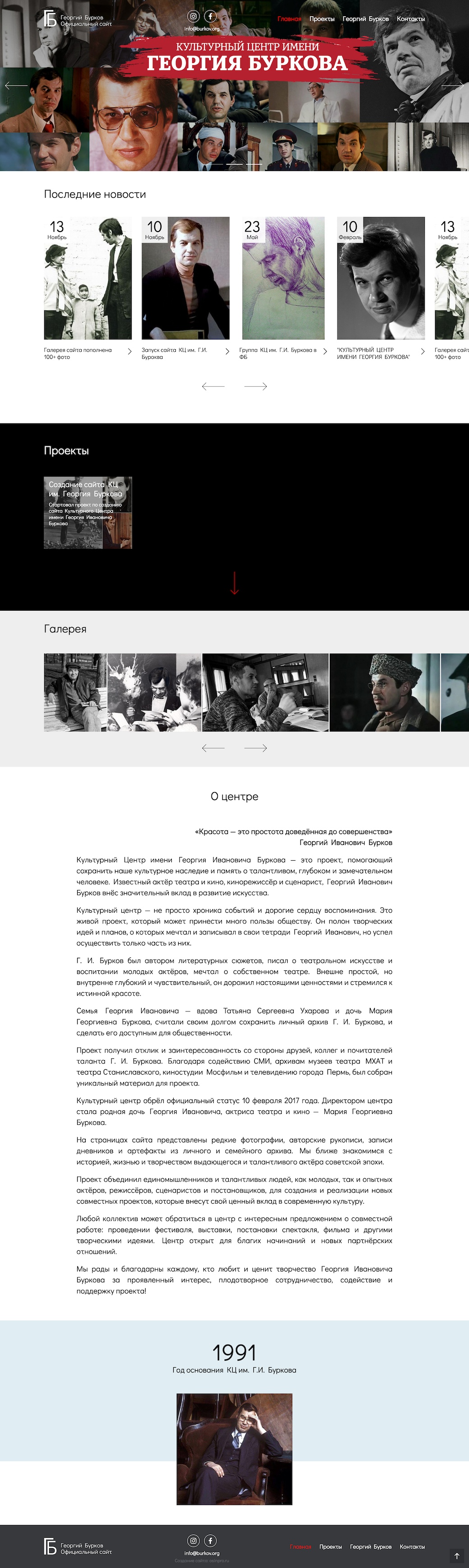 В результате работы заказчик получил полноценный официальный сайт культурного центра имени Георгия Буркова, который решает сразу несколько задач.