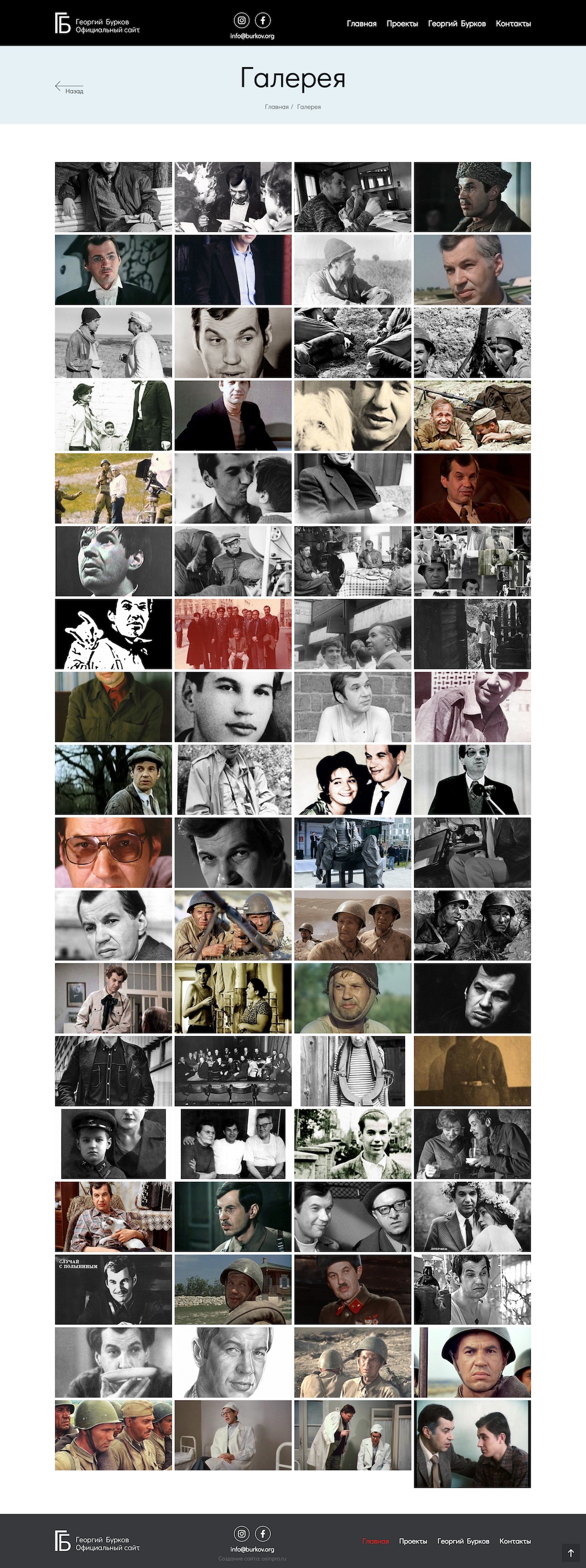Проект отличается минималистичной, но выразительной визуальной концепцией, где главный акцент сделан на личность Георгия Буркова и его творчество. Навигация проста и понятна, сайт одинаково удобен для молодых пользователей и людей старшего возраста.