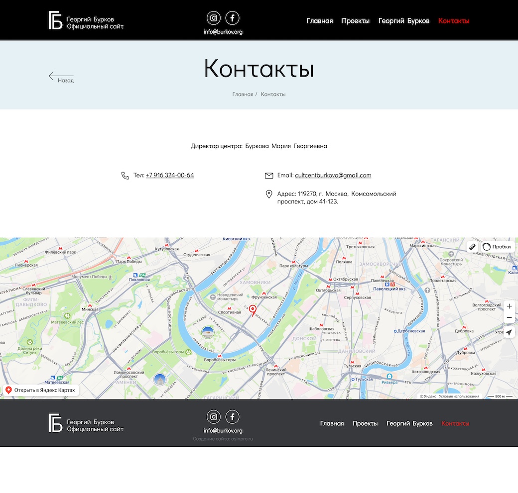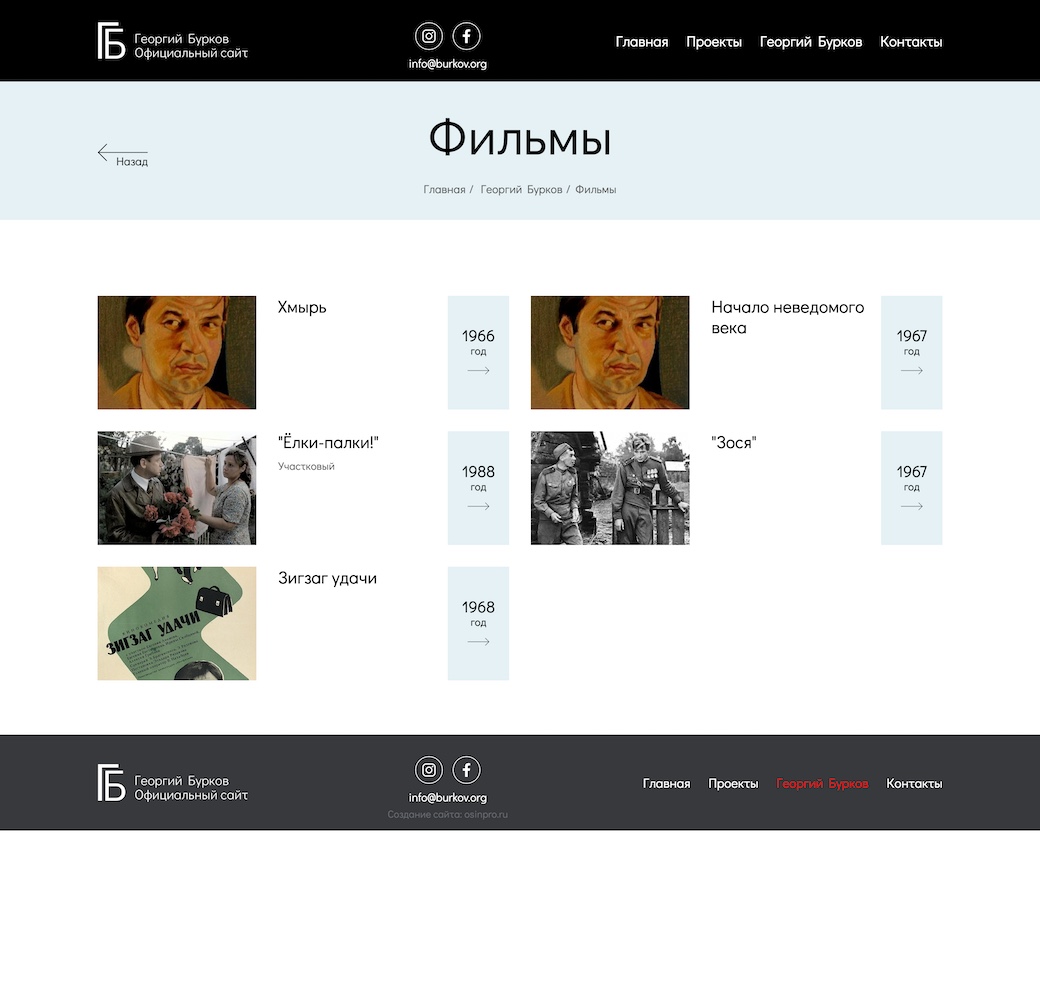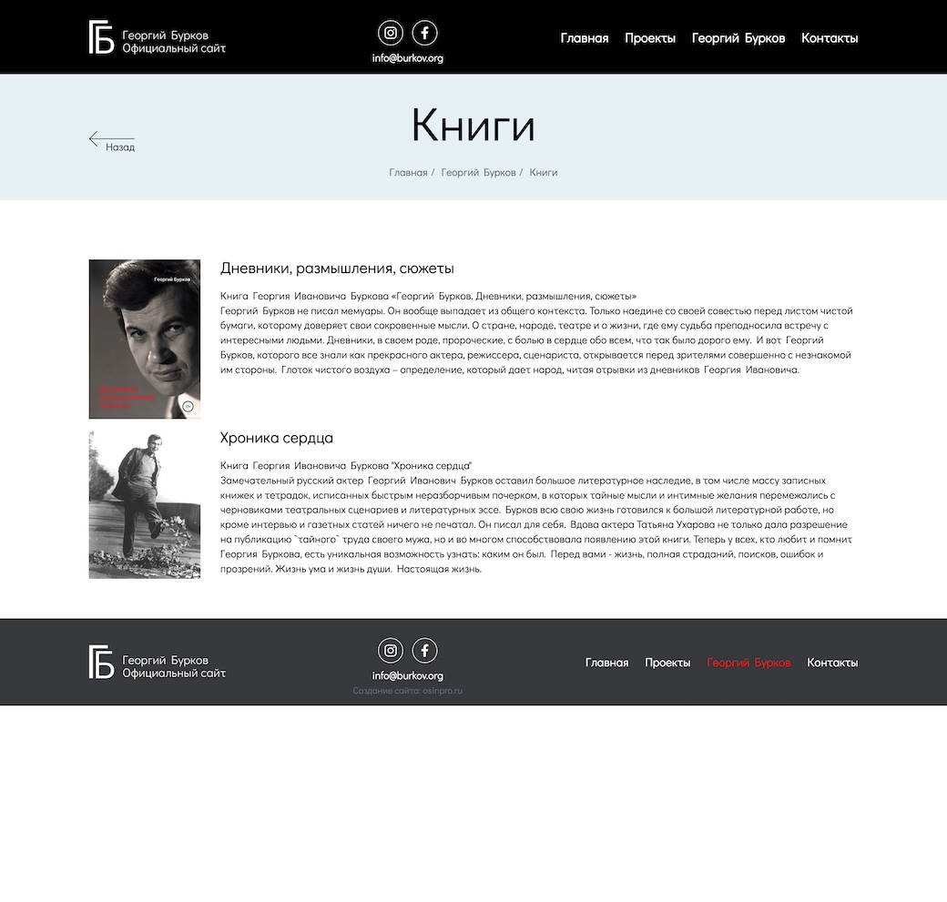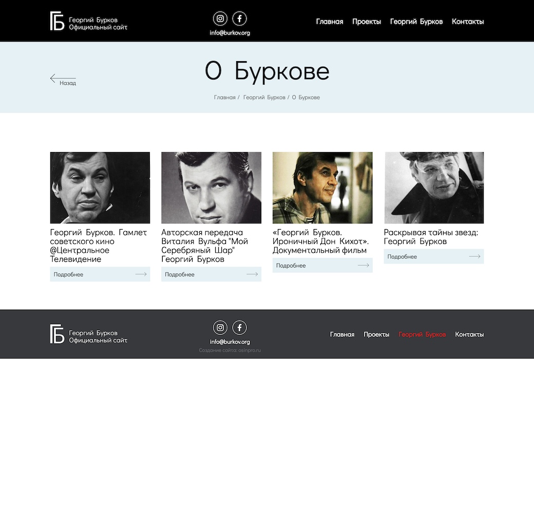 Итогом стал современный, адаптивный и удобный сайт, который не просто хранит память о Георгии Буркове, но и становится рабочим инструментом для культурного центра.