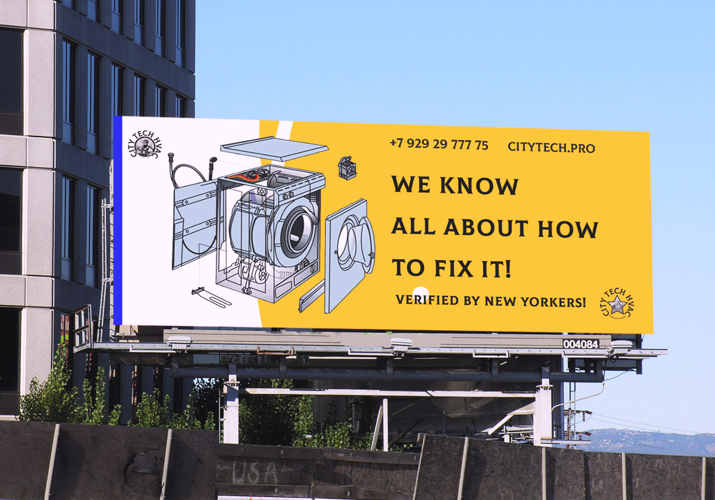 Список работ по разработке айдентики для службы починки техники на дом в Нью-Йорке