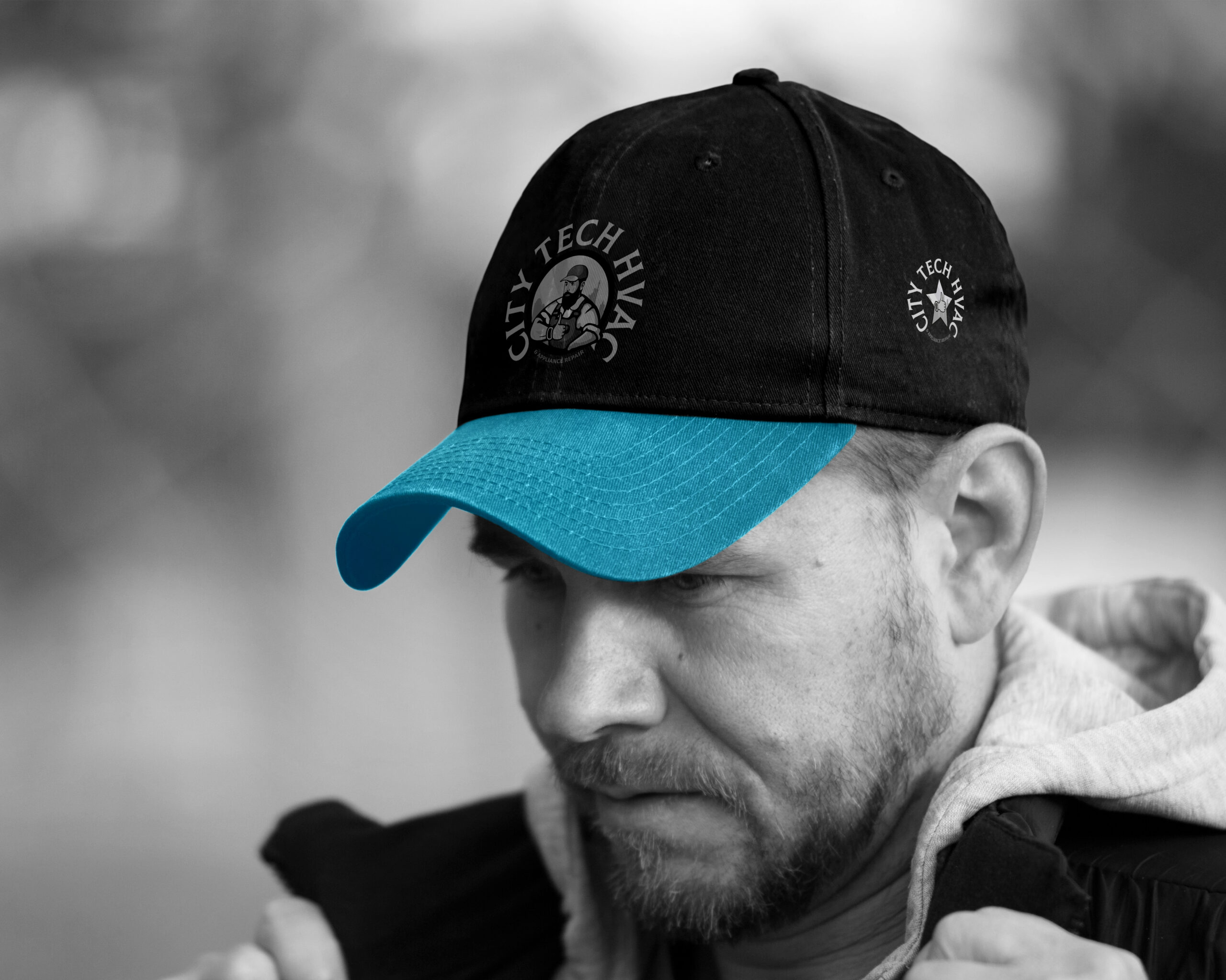 Униформа мастера: Дизайн фирменной бейсболки и футболки/толстовки с логотипом и небольшой иллюстрацией.