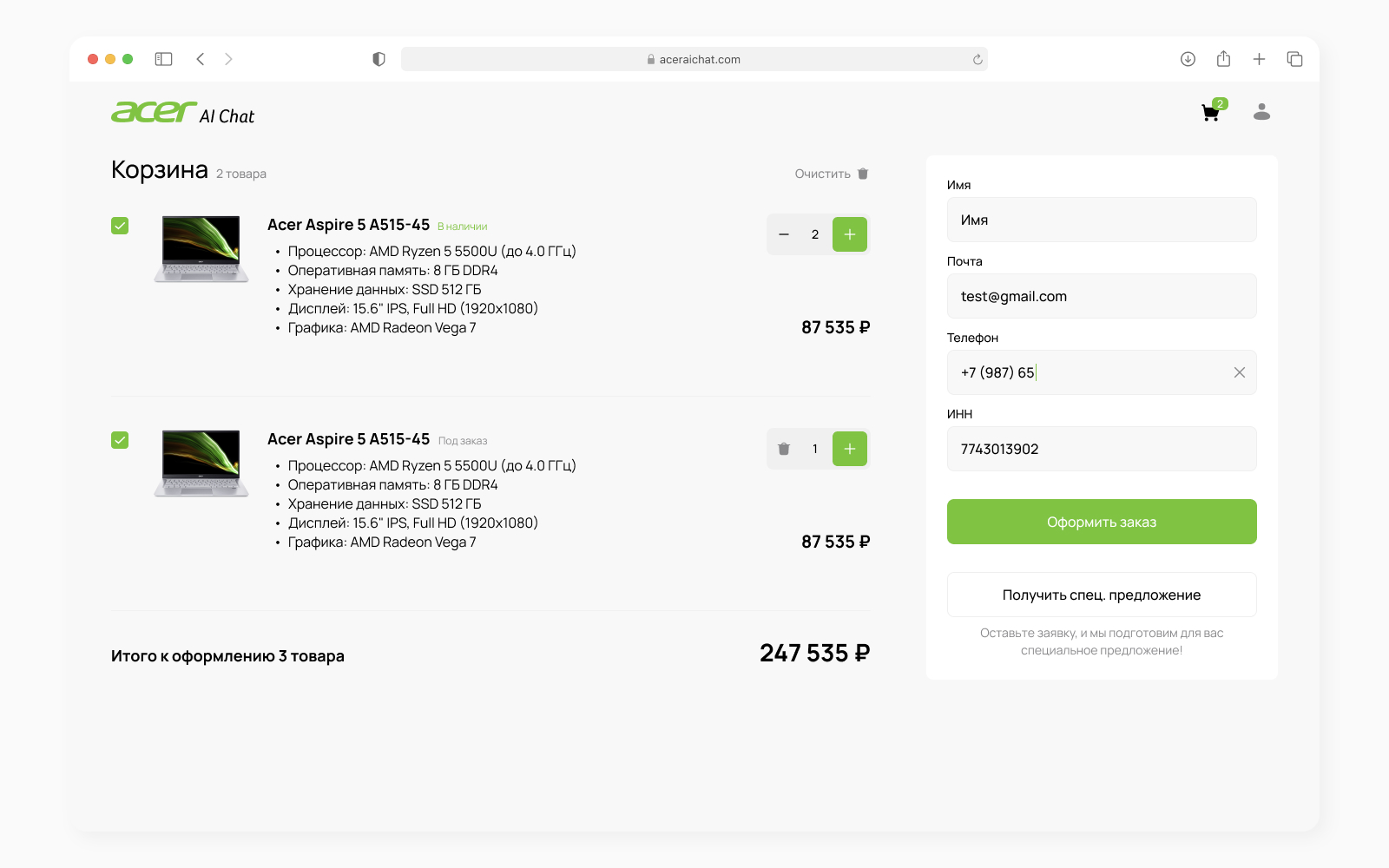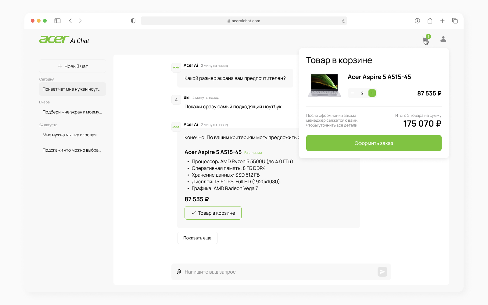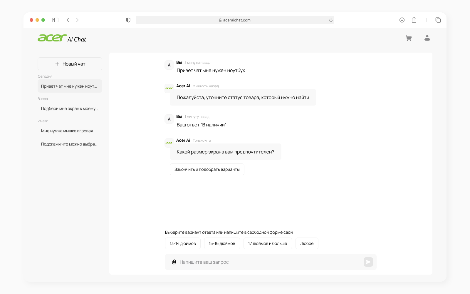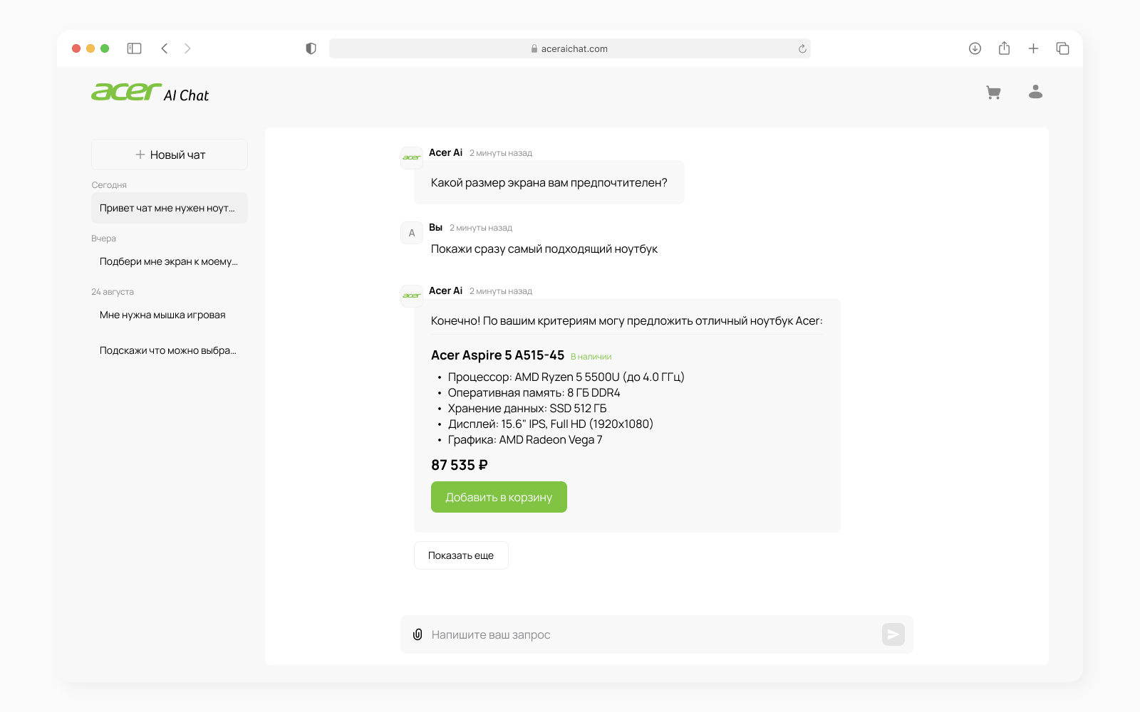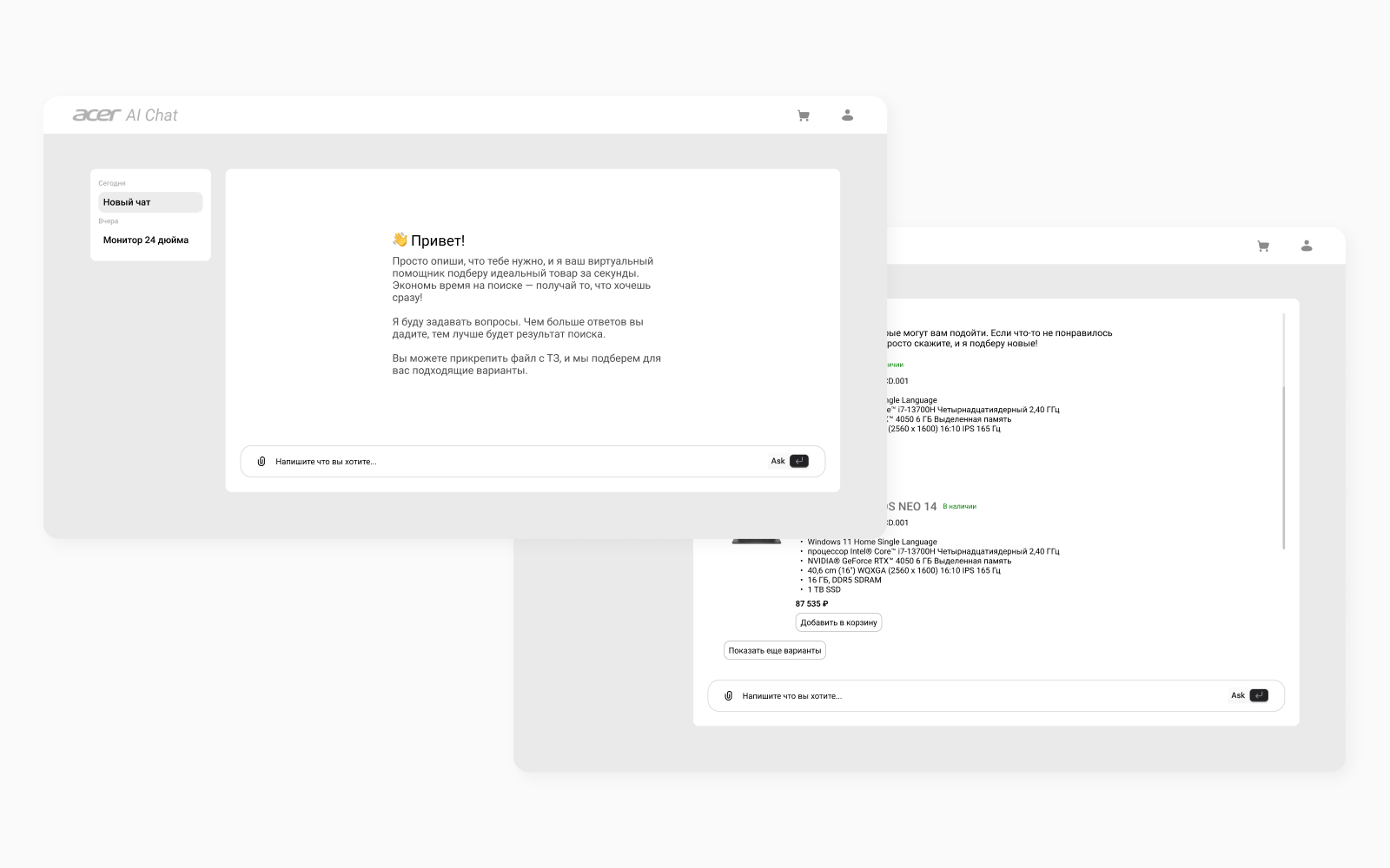 acer-ai.com стал примером того, как современные технологии могут менять рынок. Умная система иерархического подбора техники позволила объединить удобство для пользователей и пользу для бизнеса. Проект показал, что AI способен стать центральным элементом клиентского опыта, а не просто вспомогательным сервисом.