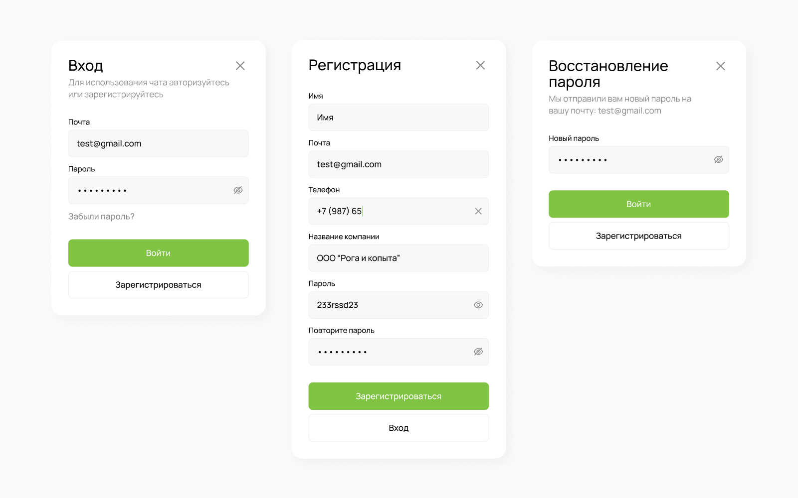 - Личный кабинет объединяет все инструменты: история чатов, заказы, корзина, заявки.