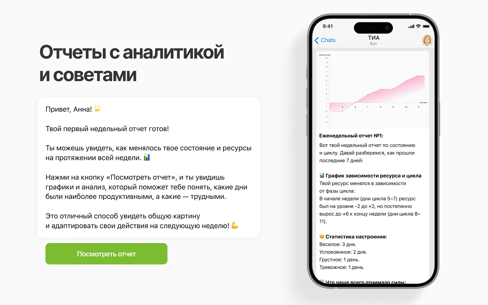 - еженедельные и ежемесячные отчеты с аналитикой и советами