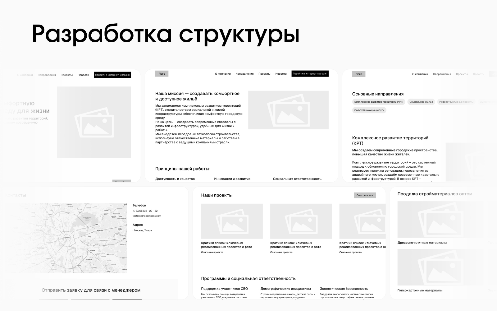 Компания-заказчик обратилась с запросом на создание многостраничного корпоративного сайта, который будет выполнять имиджевую и презентационную функцию. Основная деятельность компании связана с поставками строительных материалов, преимущественно в оптовом формате.