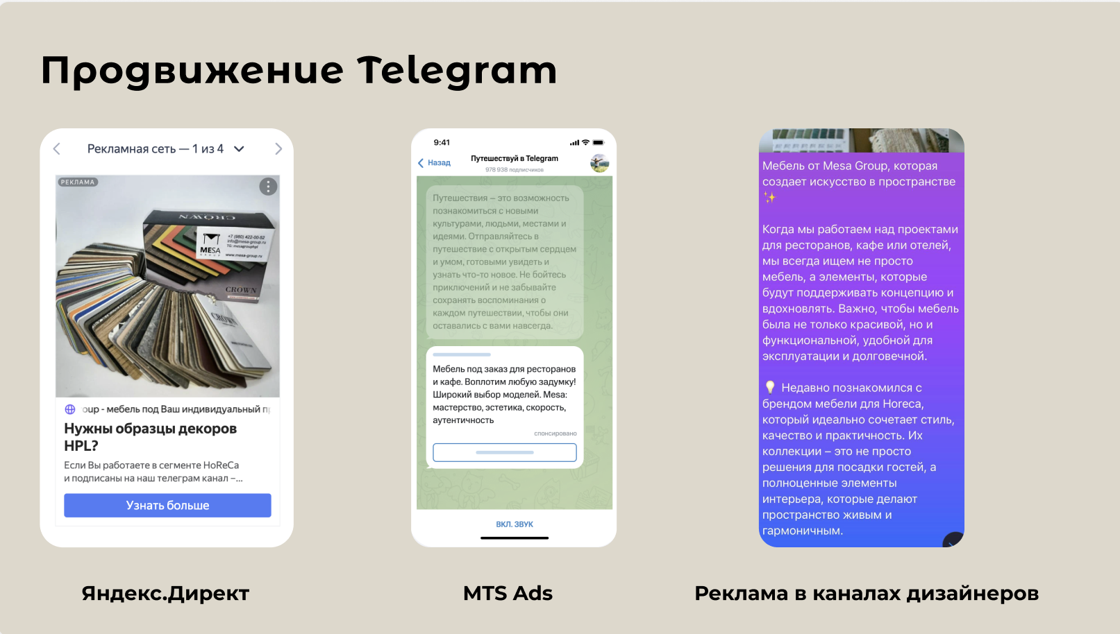 - Позиционирование в роли «Творца» с сегментацией на дизайнеров интерьера