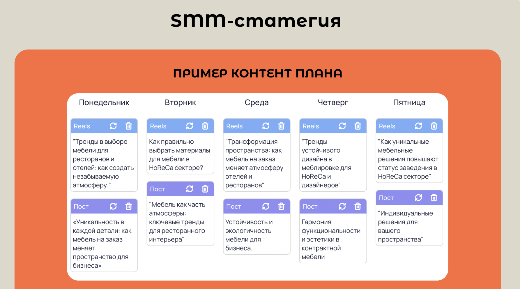 - Анализ конкурентов: Выявление основных игроков (sheffilton.com, restoracia.ru и др.), оценка их сильных и слабых сторон, позиционирования, ассортимента и маркетинговой активности.